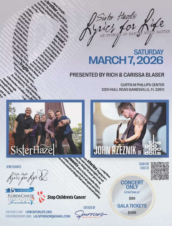 Enjoy an unforgettable evening featuring Sister Hazel with special guest John Rzeznik, all in support of children’s cancer research.